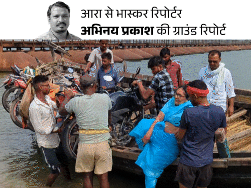 भोजपुर के खवासपुर पंचायत में उफनाती गंगा को नाव से पार कर शिक्षक पढ़ाने जा रहे हैं। बिना लाइफ जैकेट के टीचर्स रोज इसी तरह से पढ़ाने निकलते हैं। इसी नाव पर गांव वालों के सामान और गाड़ियों को भी लादकर पार कराया जाता है। भास्कर की टीम ने इन शिक्षकों से बात की एक टीचर ने हमें ये कविता सुना दी- वीर तुम बढ़े चलो, सामने पहाड़ हो, सिंह की दहाड़ हो… इस दौरान हमें गांव के कुछ लोग भी मिले। उन्होंने बताया कि बात सिर्फ शिक्षकों की नहीं है, आम आदमी भी आरा मुख्यालय से खवासपुर पंचायत आना जाना करते हैं। आजादी के बाद से अब तक गंगा पर पुल नहीं बन पाया है, जिसकी वजह से हमें अब तक नाव से ही गंगा के उस पार आना-जाना करना पड़ता है। पढ़िए आरा से पूरी रिपोर्ट… 22 पंचायतों के लोग सिर्फ नाव के सहारे सबसे पहले हम खवासपुर पंचायत पहुंचे। भोजपुर जिले के बड़हरा विधानसभा क्षेत्र में 22 पंचायत हैं, जिसमें से खवासपुर पंचायत गंगा नदी के उस पार है। अगर किसी को आरा मुख्यालय से खवासपुर जाना हो तो, उसे नाव से गंगा नदी पार करके जाना होता है। खवासपुर से तीन किलोमीटर आगे उत्तर प्रदेश का बॉर्डर लग जाता है। दरअसल, जिस इलाके की बात हो रही है, उसे महुली-खवासपुर गंगा घाट के नाम से जाना जाता है। घाट पर बारिश के सीजन के अलावा लोग पीपा पुल के जरिए आना-जाना करते हैं, लेकिन बारिश में गंगा का जलस्तर बढ़ने की वजह से पीपा पुल हटा दिया जाता है। मतलब अब गंगा नदी के दूसरी तरफ खवासपुर पंचायत के लोगों को आरा मुख्यालय आने के लिए नाव ही एक मात्र जरिया है। लेकिन जैसे-जैसे गंगा का जलस्तर बढ़ोतरी हो रही है वैसे-वैसे खतरा और भी मंडरा रहा है। गंगा खतरे के निशान से 40 सेंटीमीटर ऊपर बह रही है। घाटों पर ओवरलोड नाव पर बाइक लादकर ले जाते हैं भास्कर की टीम जब महुली-खवासपुर घाट पर पहुंची, तो देखा कि एक-दो नहीं बल्कि कई नाव ऐसी हैं, जो ओवरलोड हैं। नाव पर लोग भी हैं, बाइक भी लदी है। बाइक भी एक दो नहीं बल्कि 10 से अधिक। नाविक (नाव चलाने वाले) अपनी नाव के दोनों ओर बाइक रख देते हैं, इसके बाद करीब 18 से 20 लोगों को बैठा लेते हैं। न कोई लाइफ जैकेट, न ही कोई सुरक्षा के ऊपाय। इसी दौरान खवासपुर पंचायत के सरकारी स्कूल में पढ़ाने वाली एक टीचर मिली। उन्होंने कहा- ‘नाव जब तक पूरी भर नहीं जाती तब तक खुलती नहीं है। कभी कभी समय पर नहीं पहुंच पाते हैं। अगर मैं स्कूल जाने के लिए समय से पहले भी घाट पर पहुंच जाती हूं, तो घंटों नाव भरने का इंतजार करना पड़ता है। ऐसे में हम लोग अपनी जान जोखिम में डालकर हर दिन नाव से स्कूल पढ़ाने जाते हैं।’ सरकारी स्कूल में पढ़ाने वाली प्रतिभा सिंह ने कहा कि ‘पीपा पुल खुलने की वजह से काफी परेशानी होती है। नाव के भरने का घंटों इंतजार करना पड़ता है। हम लोग खवासपुर पंचायत में रह भी नह